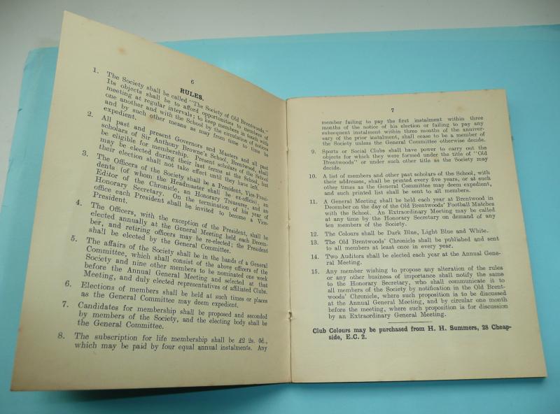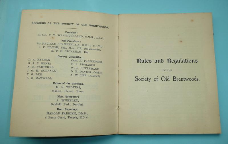 Society of Old Brentwoods Addresses and Rules Booklet 1927