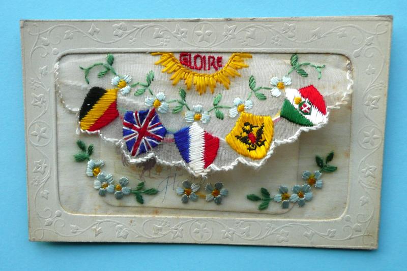 WW1 Silk Embroidered Patriotic Postcard - Birthday Greetings
