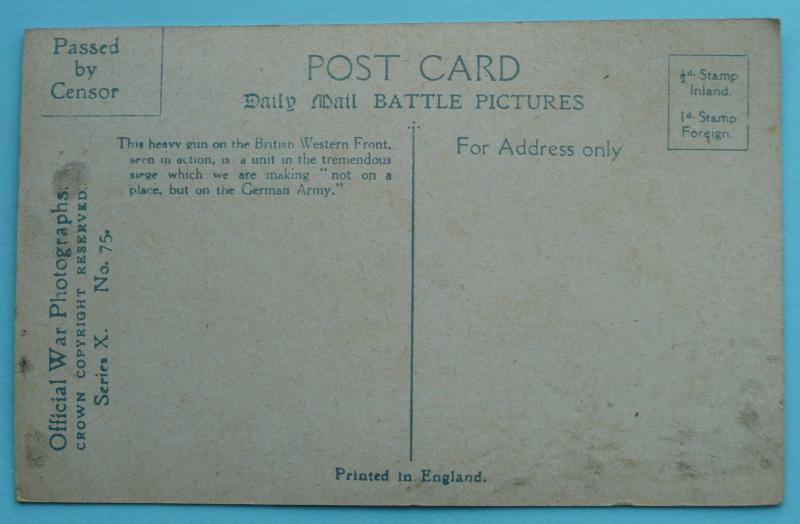 WW1 Daily Mail Series 10, Postcard No 75 - A British Heavy Gun in Action